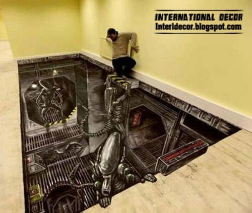 The best collection of modern 3d floor murals or 3D self leveling floor 2014, pros and cons of 3d self leveling floor and 3d floor murals interior designs, it's one of the best flooring ideas 2014 and latest ideas for floor covering, 3D self leveling floor concrete 2014 and murals on floor images .